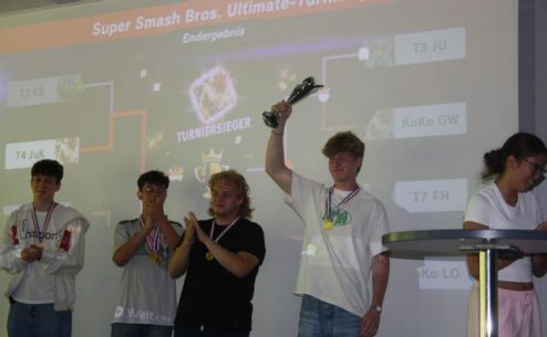 Rund 60 eSportlerinnen und eSportler haben sich am letzten Tag vor Ferienbeginn versammelt, um herauszufinden, wer den begehrten Siegespokal sein Eigen nennen darf.